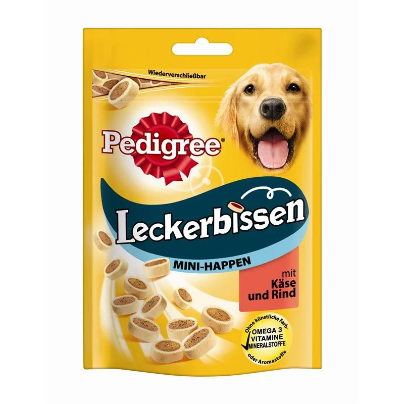 Ob beim Gassi gehen oder zu Hause, Ihr Hund wird sich sicherlich freuen, wenn er eine kleine Belohnung bekommt. Pedigree Leckerbissen sind hierfür ideal. Sie sind handlich und passen somit auch in Ihre Jackentasche und der Hund muss nicht lange kauen, bis er seinen Snack schlucken kann. Bei der Zubereitung von Pedigree Leckerbissen wird darauf geachtet, dass nur hochwertige Zutaten verarbeitet werden. Sie sind angereichert mit Vitaminen und Mineralstoffen und wertvollem Omega 3. Ihr Hund wird nicht mit unnötigen Kalorien belastet und die Inhaltsstoffe sorgen auch noch dafür, dass er gesund und vital bleibt. Die Produkte von Pedigree werden in Zusammenarbeit mit Tierärzten entwickelt. Somit kann gewährleistet werden, dass wirklich nur die Inhaltsstoffe in dem Futter sind, die der Hund auch wirklich braucht.