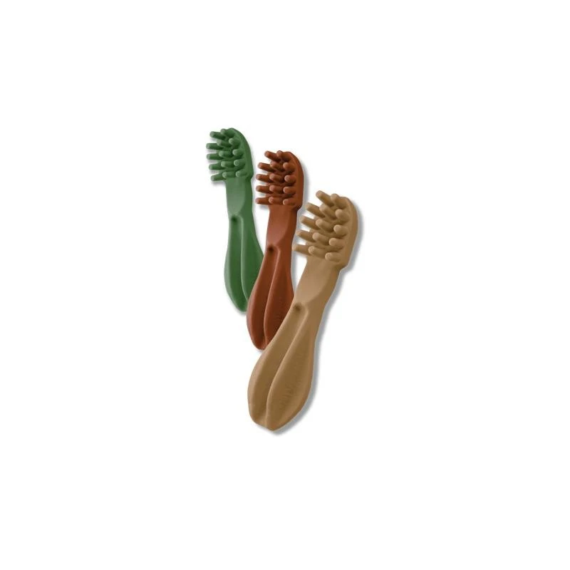 Die Zahnpflegesnacks von Whimzees gibt es nicht nur in verschiedenen Formen, sondern auch in unterschiedlichen Größen; der niederländische Hersteller hat dabei auch an die ganz kleinen Hunde gedacht und deshalb können wir Ihnen hier die optimal geformte Mini-Zahnbürste für Hunde unter 7 kg Körpergewicht anbieten – in der superpraktischen Sparpackung mit 350 (!) Zahnbürstchen, mit denen Sie sehr lange auskommen, denn der Hersteller empfiehlt die Gabe von einer Bürste pro Tag. Whimzees sind rein vegetarische Hundesnacks ohne Getreide, die wegen ihrer idealen, durchdachten Form sehr gut dazu geeignet sind, beim Kauen und Nagen Futterreste und Zahnstein aus dem Gebiss Ihres Hundes zu entfernen; durch die Furchen und Höcker der Zahnbürste werden aber nicht nur die Zähne gereinigt, sondern auch die wichtigen Zahnzwischenräume, auf die es ebenso ankommt. Wegen ihrer getreidefreien Formulierung und der Verwendung rein natürlicher pflanzlicher Rohstoffe ohne chemische Zusätze sind die Whimzees Produkte generell sehr empfehlenswert für den Einsatz bei fütterungssensiblen Hunden. Es ist ein wesentlicher Bestandteil des wohlüberlegten Whimzees-Konzeptes, dass die vegetarischen Rohstoffe nicht einfach nur der Formgebung dienen, sondern auch zahlreiche wichtige Inhaltsstoffe enthalten, die Ihren Hund „nebenbei“ mit Vitaminen, Mineralien, Ballaststoffen und antioxidativ wirksamen Substanzen versorgen. Das gilt auch für die verwendeten drei natürlichen Farbstoffe (Extrakte aus der Luzerne, dem Malz und aus Annatto) – Sie sehen, Whimzees sind rundum gesunde und nützliche Ergänzungsfuttermittel, die man erfinden müsste, wenn es sie nicht schon gäbe. Bei uns im Shop erhalten Sie sämtliche verschiedenen Formen der Whimzees in den unterschiedlichsten Größen und Mengen. Es ist für jeden Hund das passende Whimzee dabei.